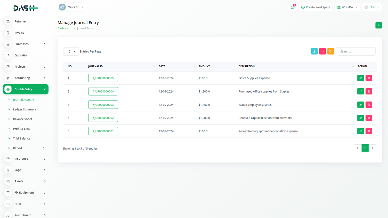 Journal Account typically refers to an account used in the double entry accounting system to record individual financial transactions. In the double entry system, each financial transaction is recorded in a journal account with both a debit and a credit entry to ensure the accounting equation (assets = liabilities + equity) remains balanced.