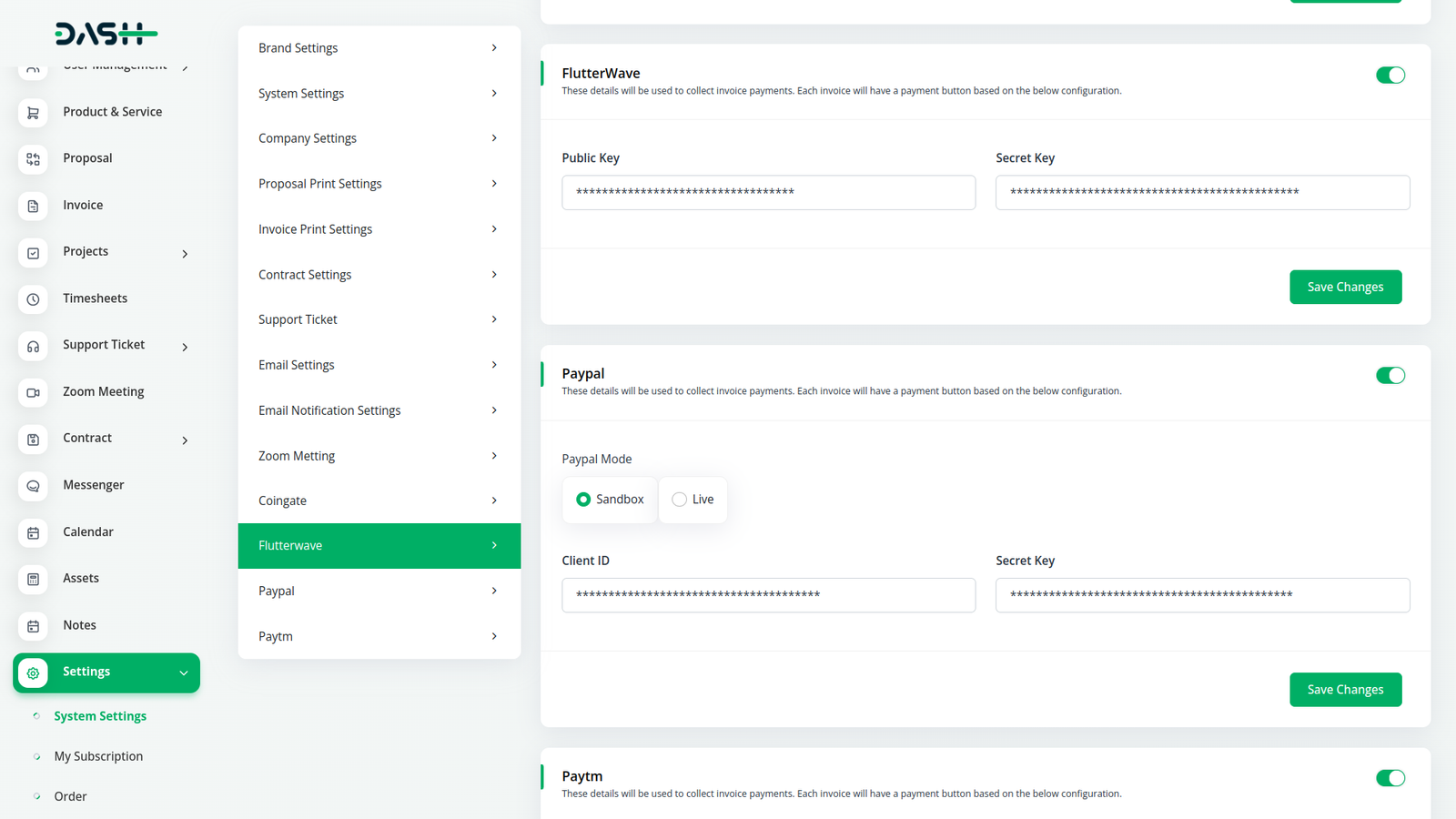 Configuring FlutterWave integration has never been easier. With our intuitive API Key settings page, you can seamlessly set up and manage your FlutterWave integration to ensure a smooth and secure payment process.