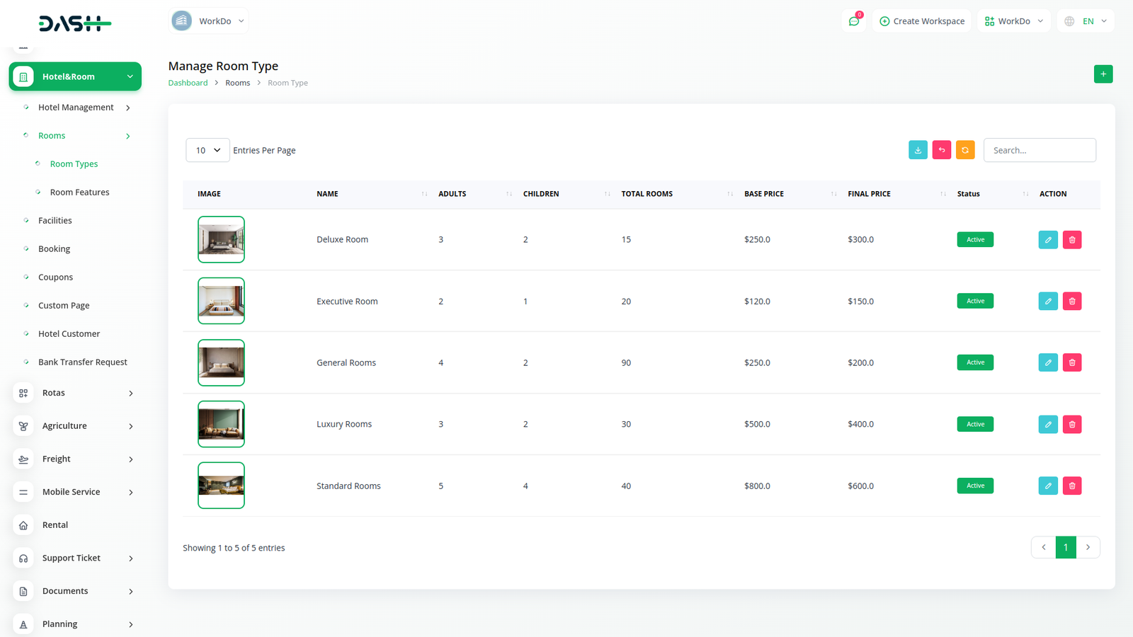 Hotel&Room Management provide Facilities people all over the world and make booking hotel rooms online easy and fast. Easily manage your hotel&room management, Room Types, Room Features, Facilities, and Room Booking from one intuitive dashboard.