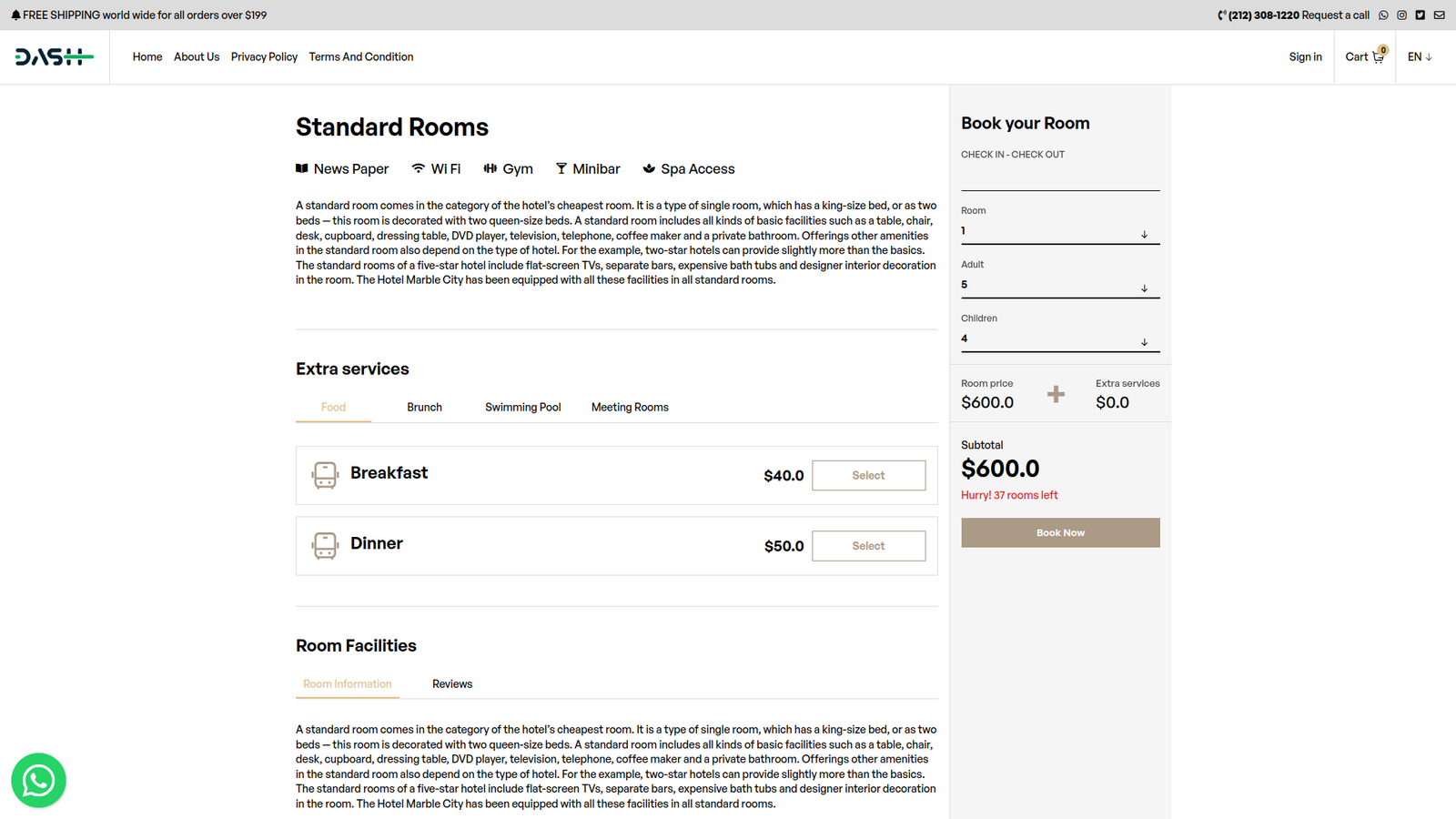 Make your Booking process fast and convenient for your customers. select date of when you want to stay in hotel room and select the room your customers want to stay and after click on Book Now.
