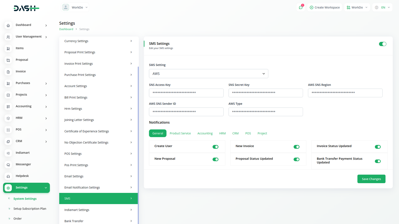 Receive immediate notifications of vital updates, notifications, and alerts directly to your mobile device via SMS. Stay informed about crucial events wherever you are, ensuring you never miss an important message. Getting started is simple - just input your SMS gateway information in the settings page, then toggle notifications on or off according to your preferences. Stay connected and informed with Workdo Dash/s SMS Module.